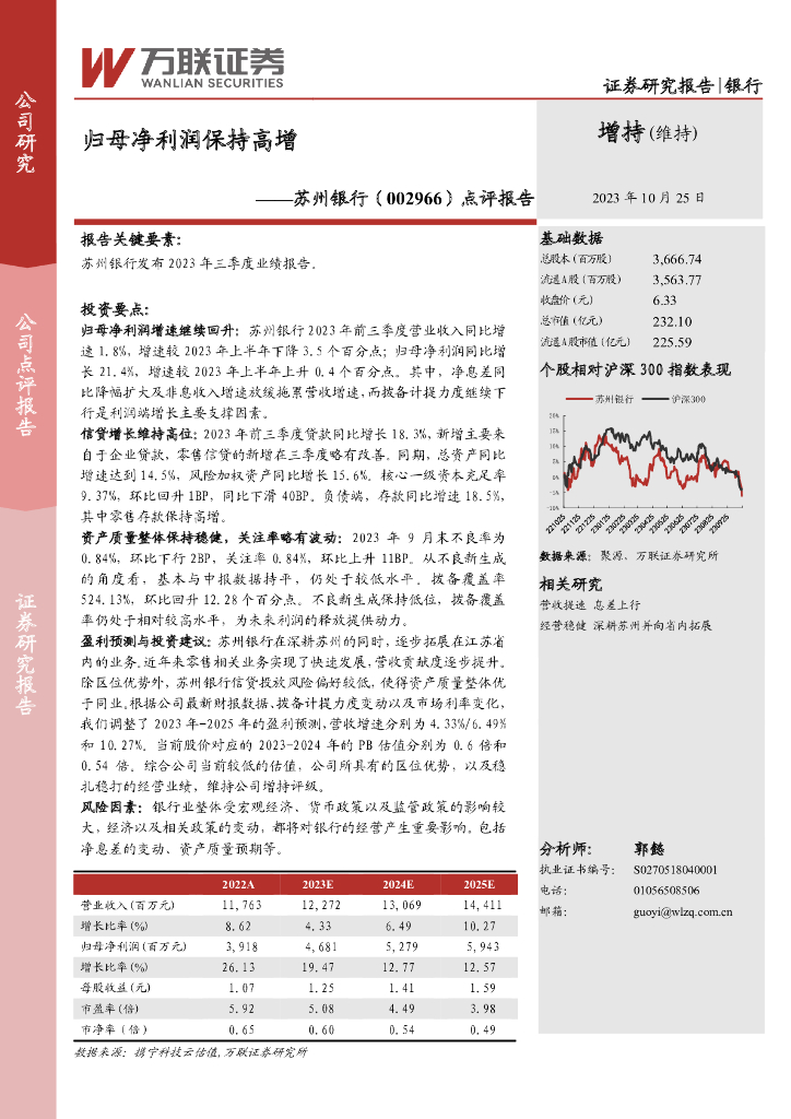 万联证券:苏州银行(002966)-点评报告:归母净利润保持高增.pdf