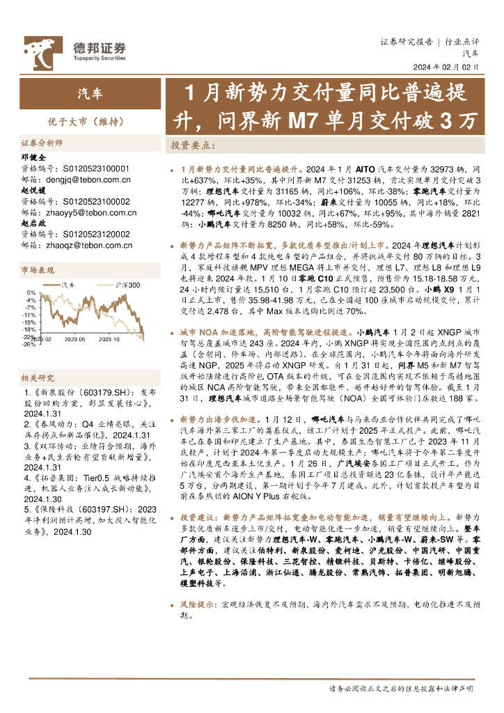 德邦证券:汽车:1月新势力交付量同比普遍提升,问界新M7单月交付破3万.pdf