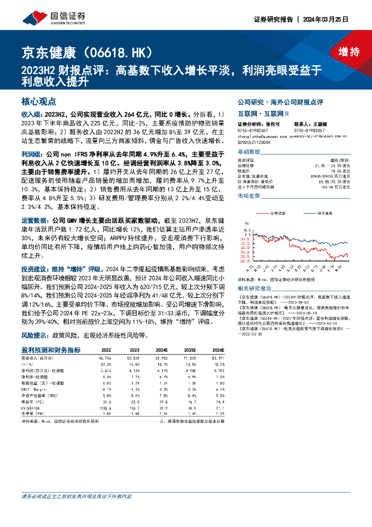 国信证券:京东健康(06618)港股公司研究报告-2023H2财报点评:高基数下收入增长平淡,利润亮眼受益于利息收入提升.pdf