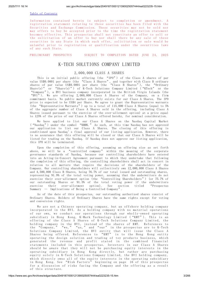 K-Tech Solutions Company Limited美股纳斯达克IPO上市招股说明书.pdf