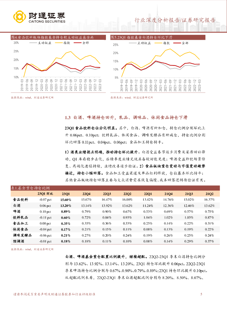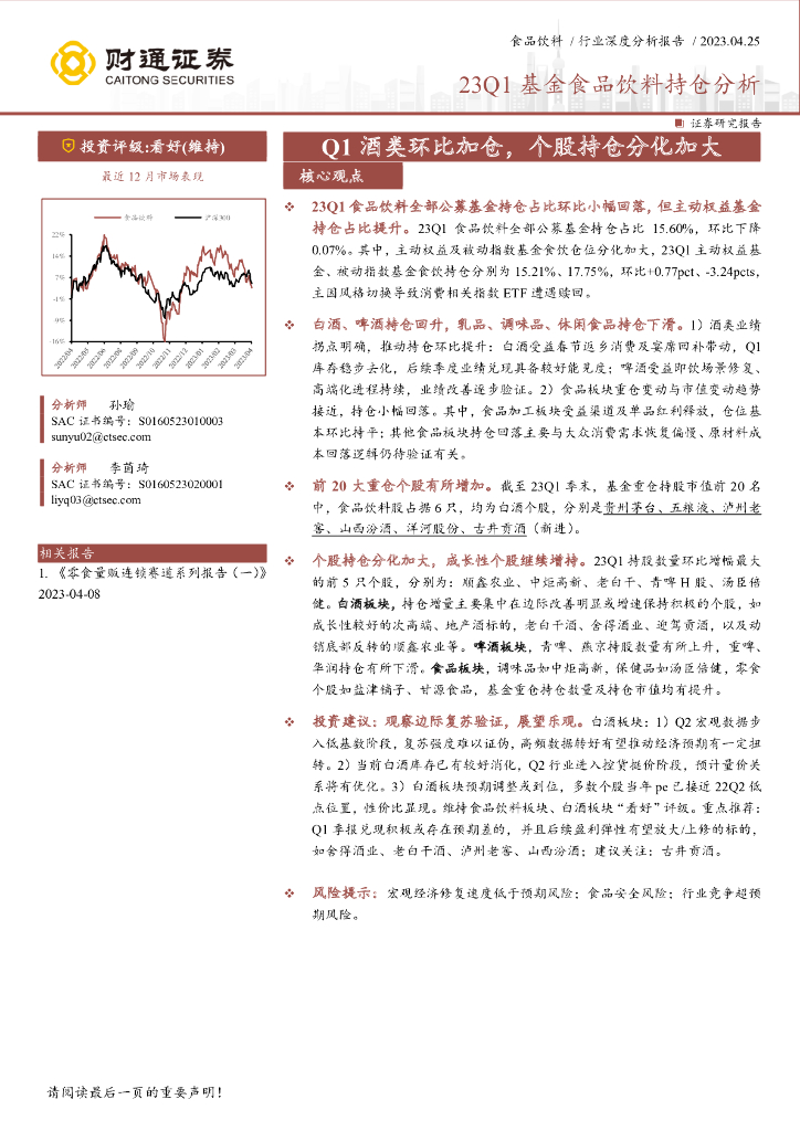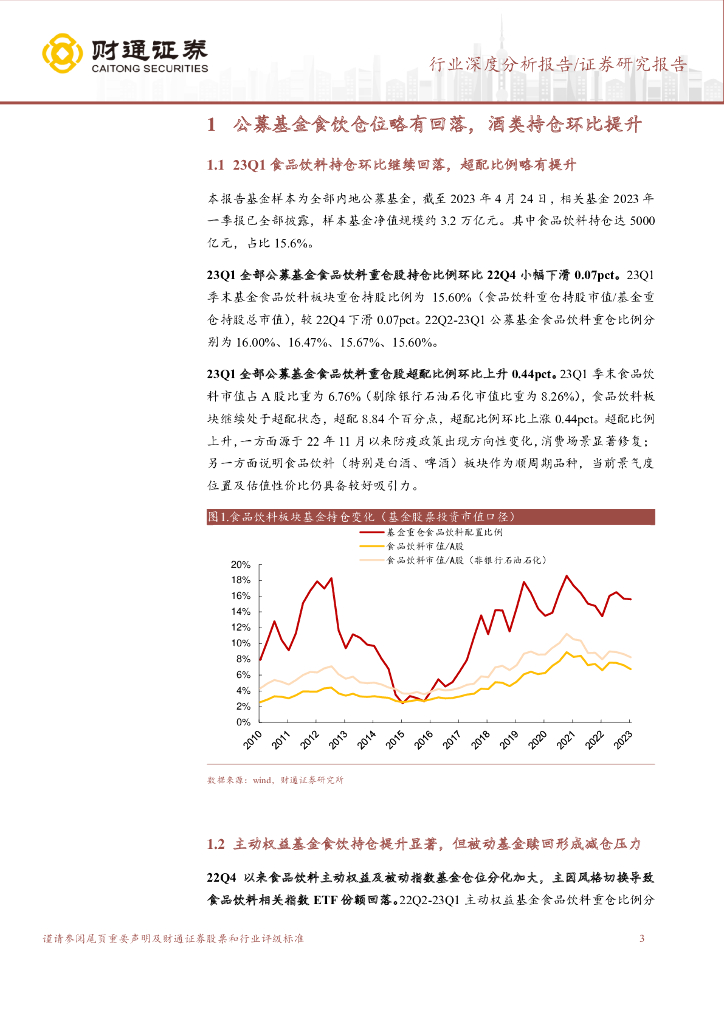 财通证券:食品饮料行业23Q1基金食品饮料持仓分析:Q1酒类环比加仓,个股持仓分化加大.pdf