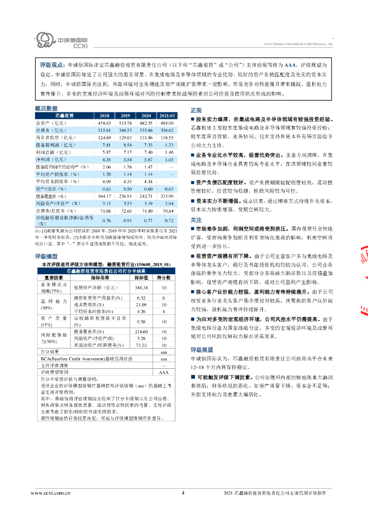 中诚信:芯鑫融资租赁有限责任公司主体信用评级报告及跟踪评级安排.pdf
