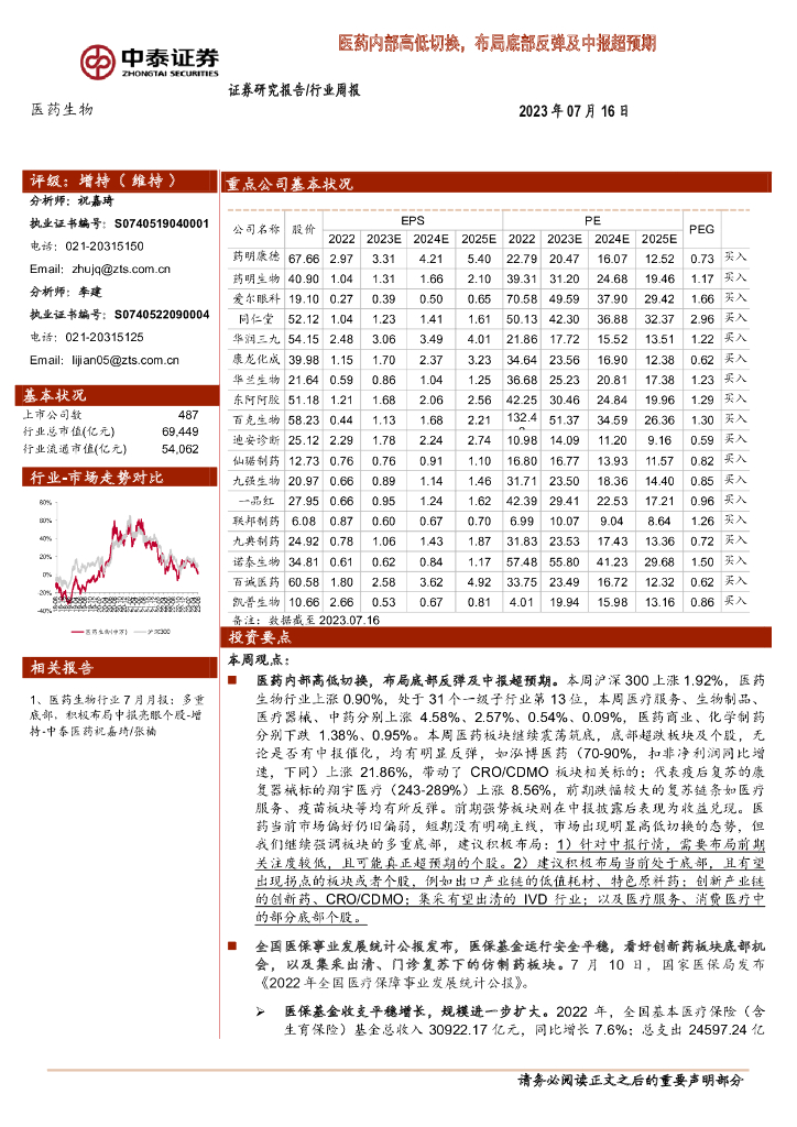 中泰证券:医药生物行业周报:医药内部高低切换,布局底部反弹及中报超预期.pdf