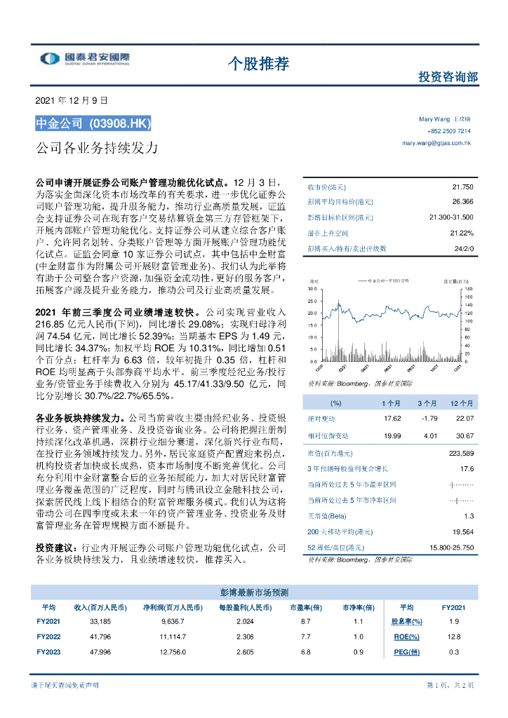 国泰君安证券(香港):中金公司(03908)港股公司研究报告-公司各业务持续发力.pdf