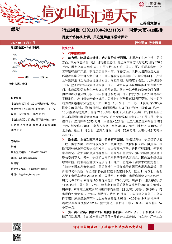 山西证券:煤炭行业周报:月度长协价格上调,关注迎峰度冬需求回升.pdf