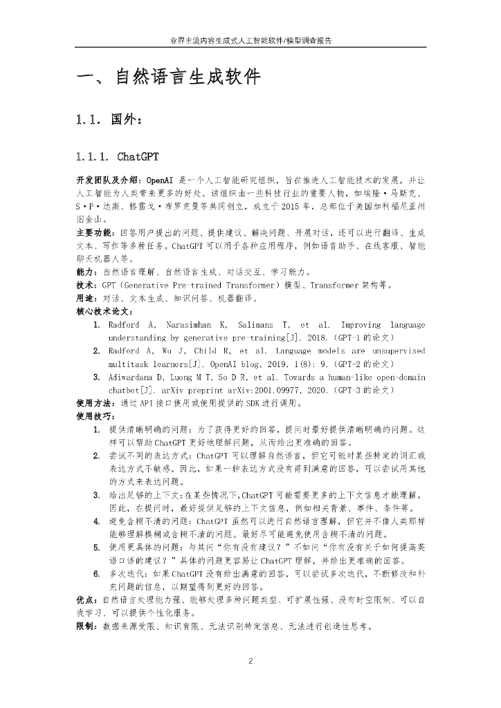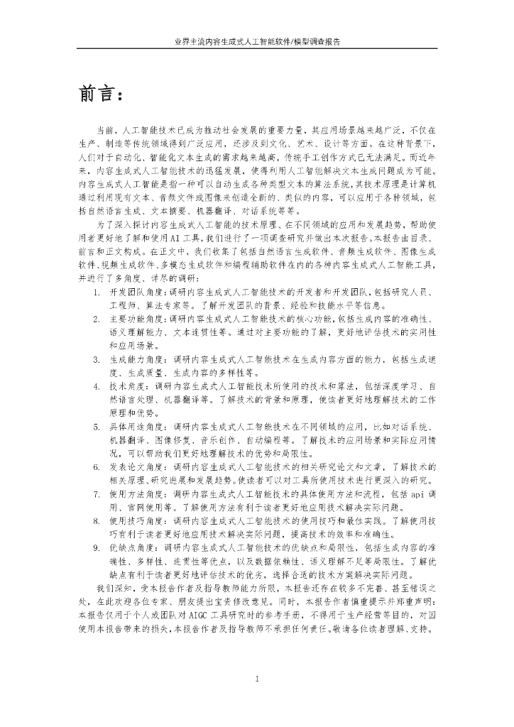 北京邮电大学:业界主流内容生成式人工智能软件模型调查报告.pdf