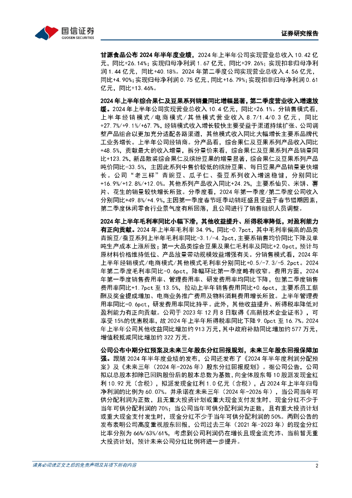 国信证券:甘源食品(002991)-第二季度收入增速有所放缓,未来三年股东回报保障增强.pdf