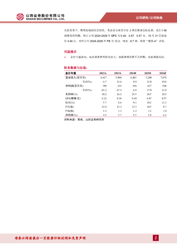 山西证券:潮宏基(002345)-2024Q3营收端展现韧性,线下渠道保持稳健开店.pdf