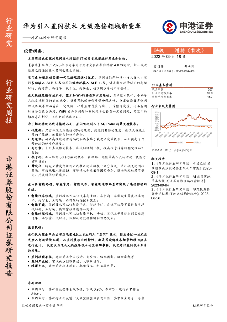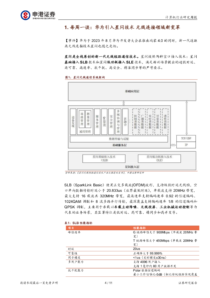 申港证券:计算机行业研究周报:华为引入星闪技术 无线连接领域新变革.pdf