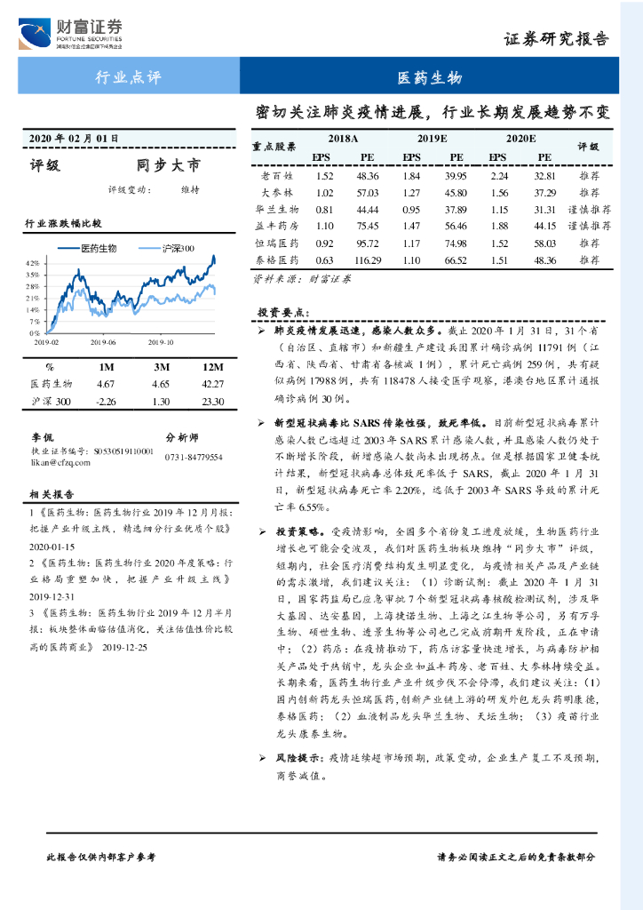 财富证券:医药生物行业点评:密切关注肺炎疫情进展,行业长期发展趋势不变.pdf
