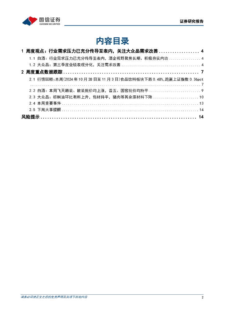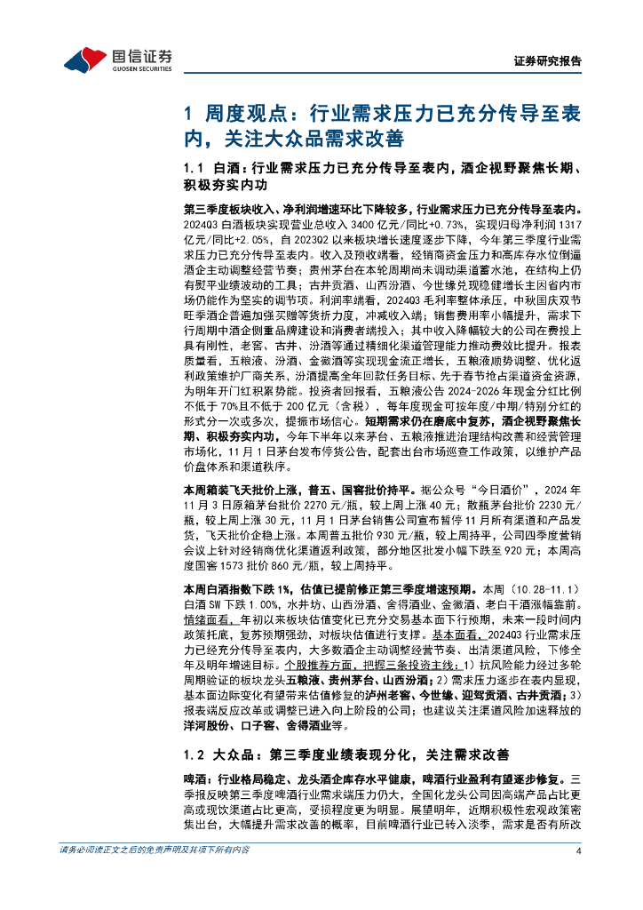国信证券:食品饮料周报(24年第45周):白酒需求压力已充分传导至表内,关注大众品需求改善.pdf
