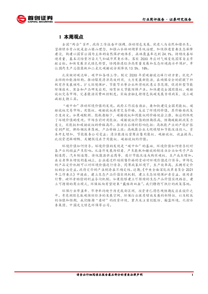 首创证券:环保行业简评报告:“碳中和”背景下的环境价值发现与传导.pdf