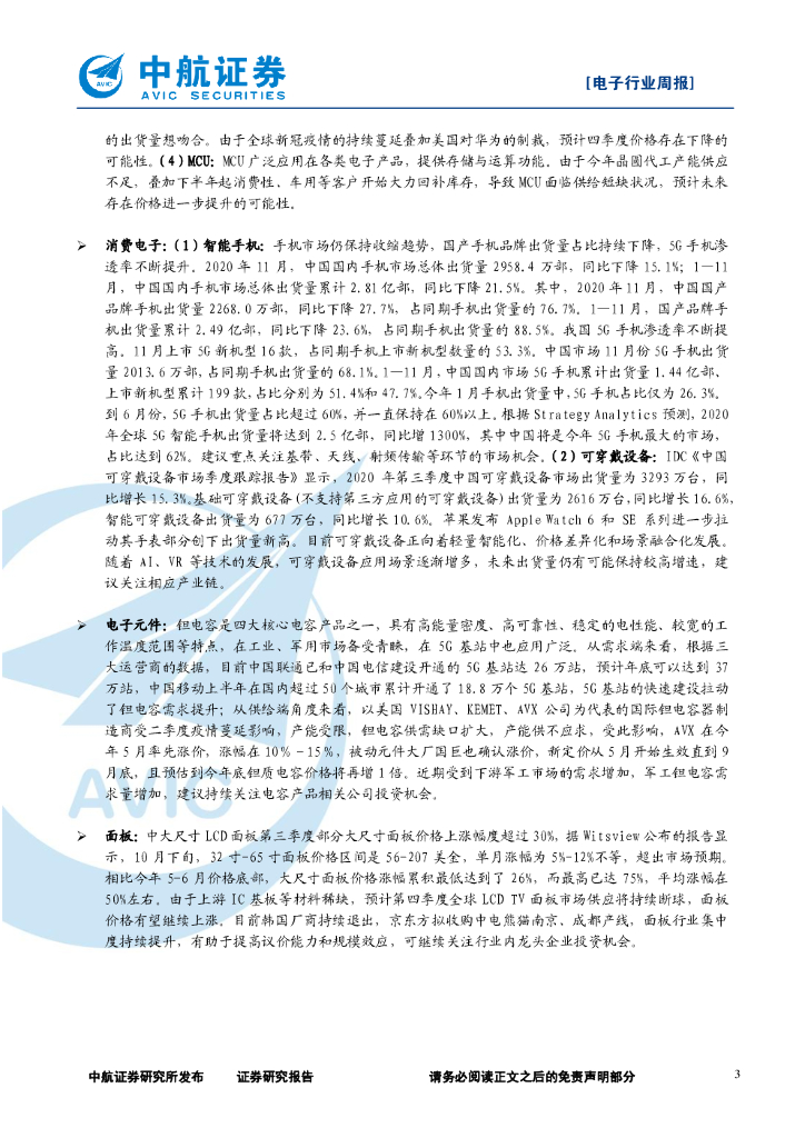 中航证券:电子行业周报:我国11月手机出货量出炉,国产手机品牌占比下降,5G手机渗透率持续上升.pdf