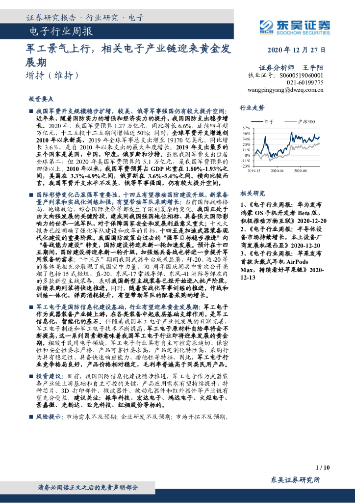 东吴证券:电子行业周报:军工景气上行,相关电子产业链迎来黄金发展期.pdf