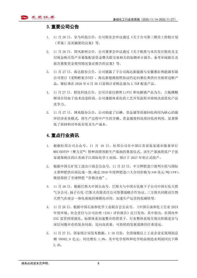 东莞证券:基础化工行业双周报:1-10月份规模以上工业企业利润总额同比增长1.9%.pdf