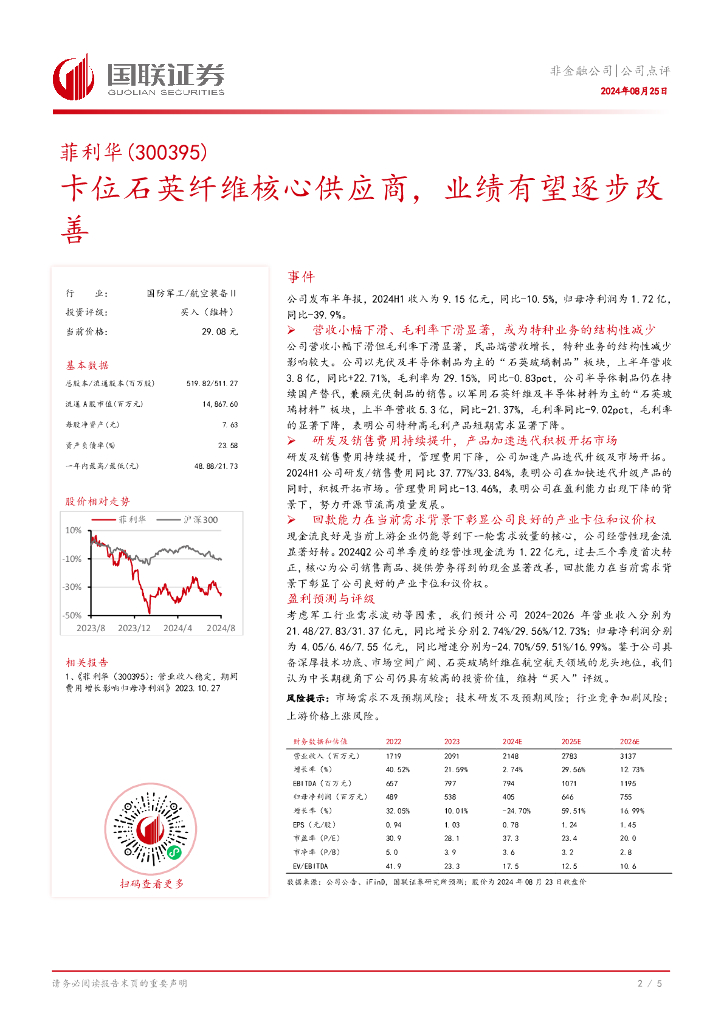 国联证券:菲利华(300395)-卡位石英纤维核心供应商,业绩有望逐步改善.pdf