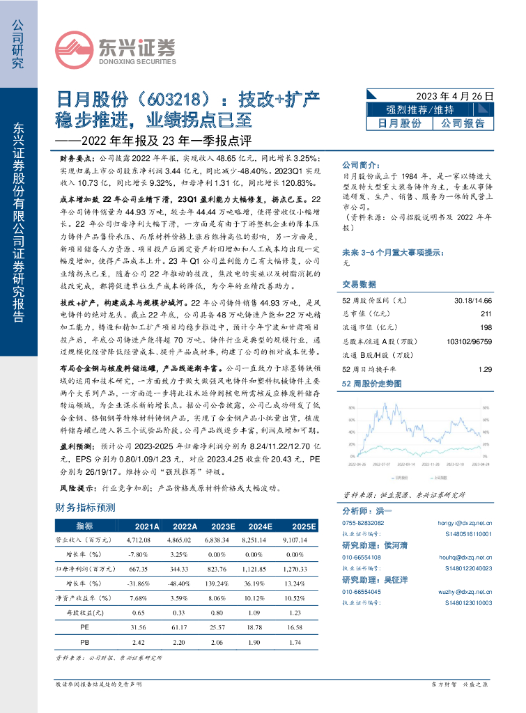 东兴证券:日月股份(603218)-2022年年报及23年一季报点评:技改+扩产稳步推进,业绩拐点已至.pdf