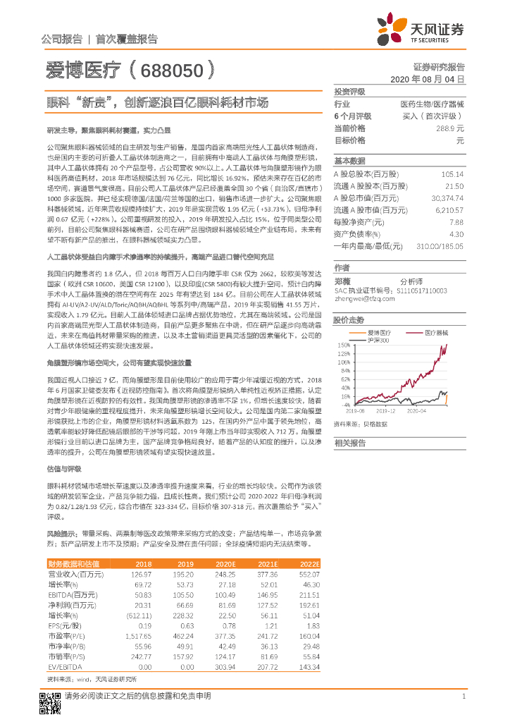 天风证券:爱博医疗(688050)-眼科“新贵”,创新逐浪百亿眼科耗材市场.pdf