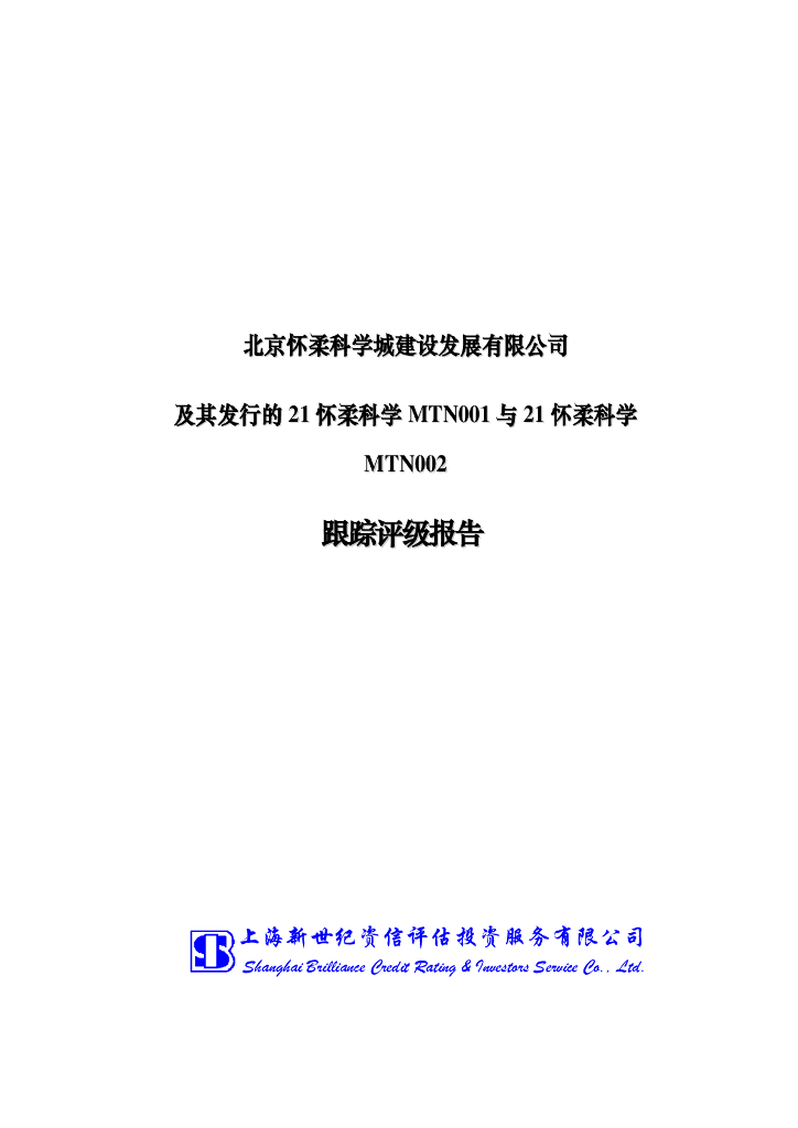 新世纪:北京怀柔科学城建设发展有限公司评级报告.pdf