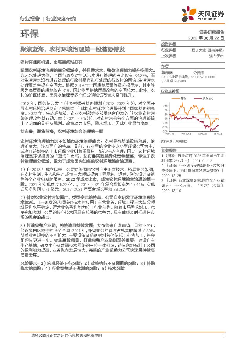天风证券:环保行业深度研究:聚焦蓝海,农村环境治理第一股蓄势待发.pdf
