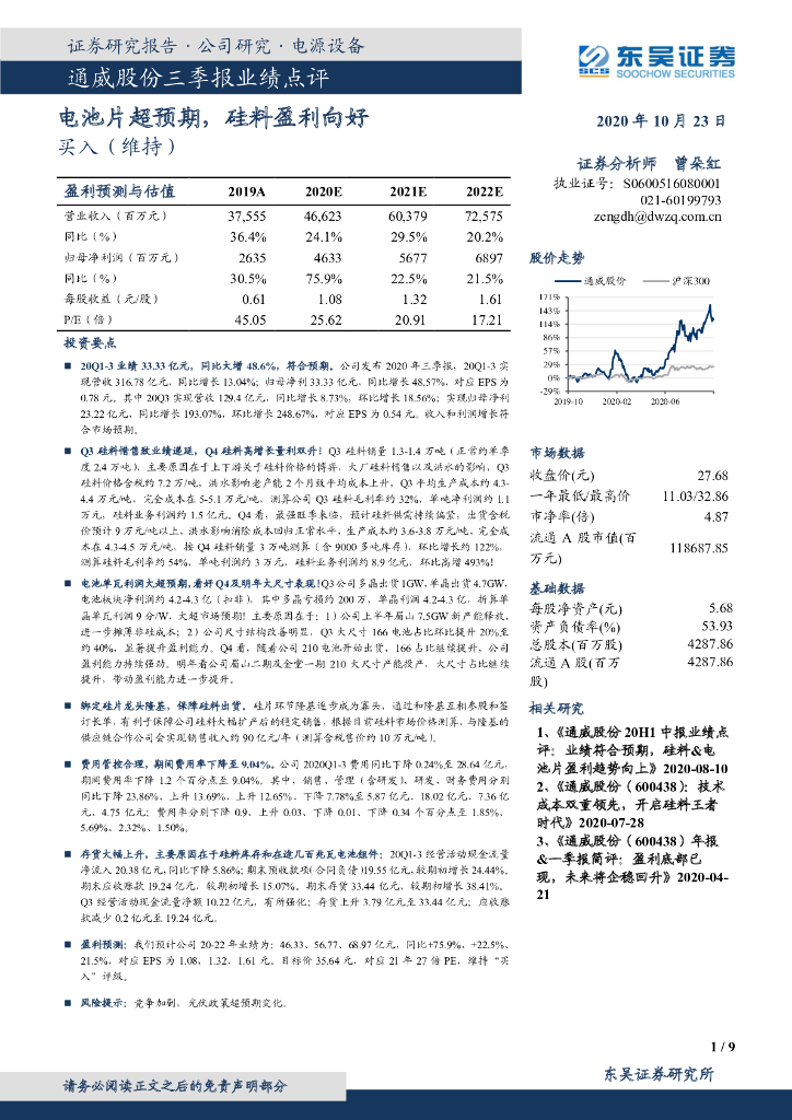 东吴证券:通威股份(600438)-电池片超预期,硅料盈利向好.pdf