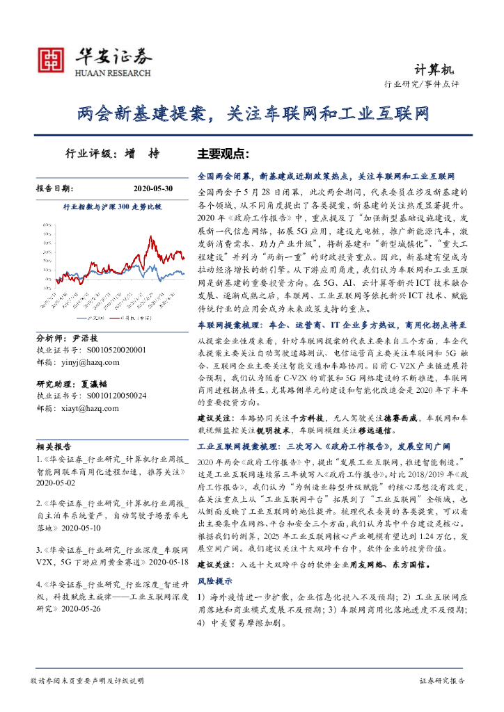 华安证券:计算机:两会新基建提案,关注车联网和工业互联网.pdf