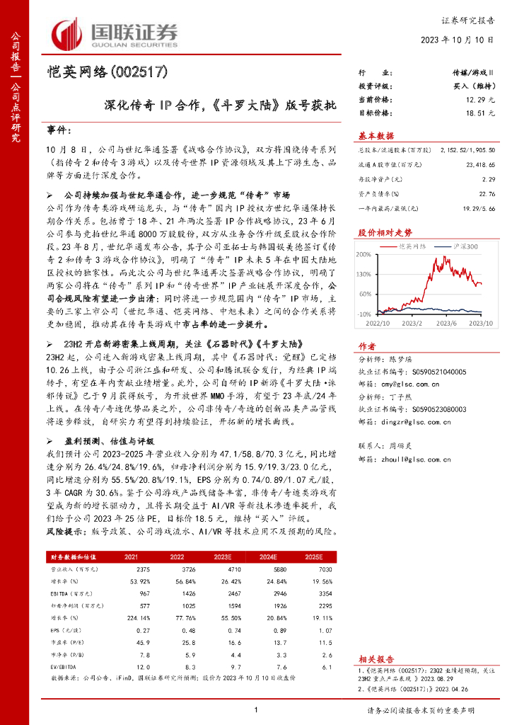 国联证券:恺英网络(002517)-深化传奇IP合作,《斗罗大陆》版号获批.pdf
