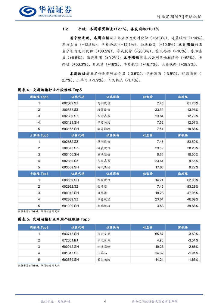 华福证券:交通运输行业周报:重视产能利用率提升的直营快递,外贸运价底部反弹.pdf