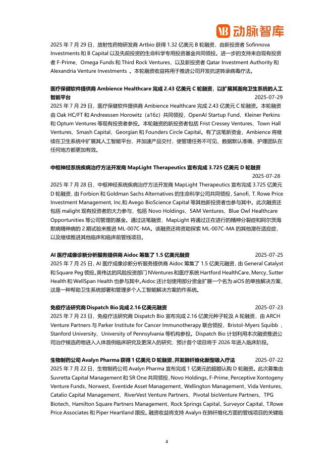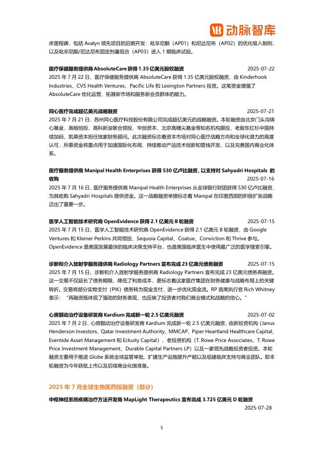 动脉橙:2025年7月全球医疗健康领域投融资月报.pdf
