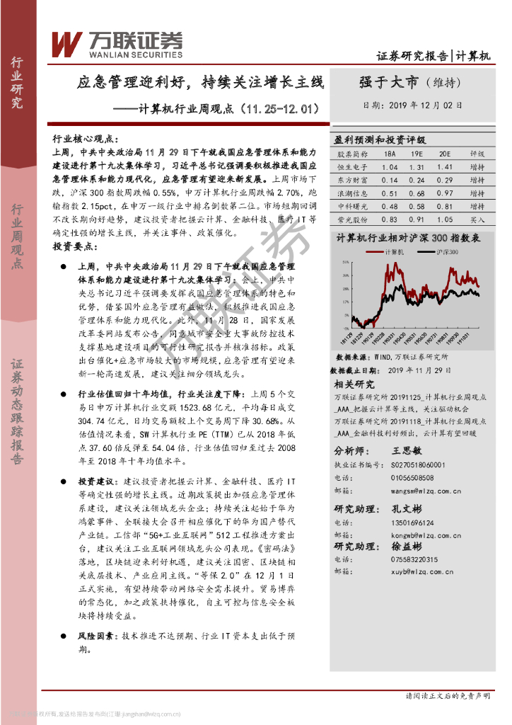 万联证券:计算机行业周观点:应急管理迎利好,持续关注增长主线.pdf