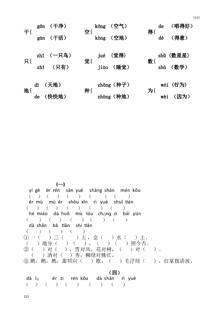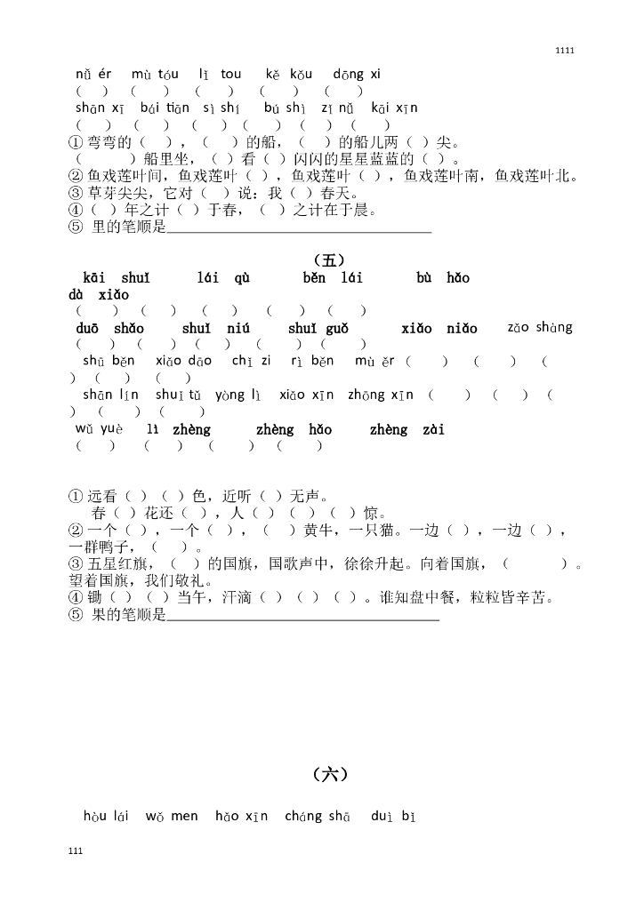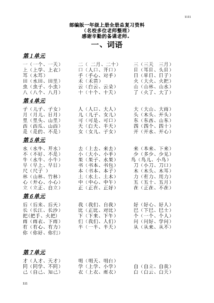 部编版一年级语文上册期末复习训练题.doc