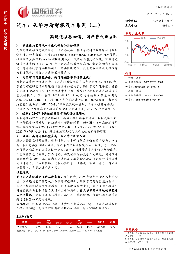 国联证券:汽车:从华为看智能汽车系列(二)-高速连接器加速,国产替代正当时.pdf