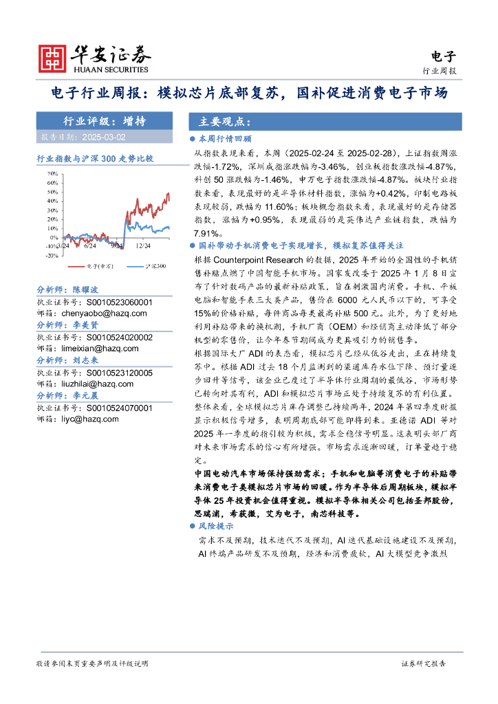 华安证券:电子行业周报:模拟芯片底部复苏,国补促进消费电子市场.pdf