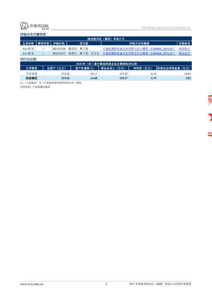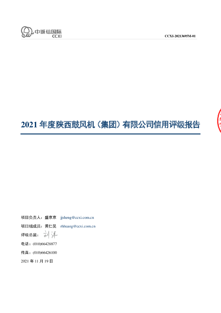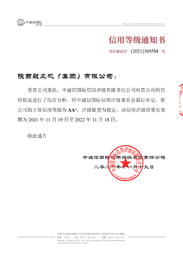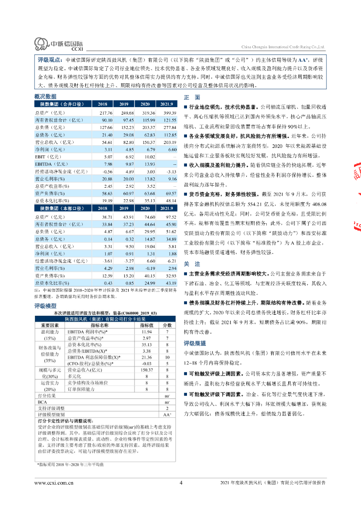 中诚信:陕西鼓风机(集团)有限公司主体信用评级报告及跟踪评级安排.pdf