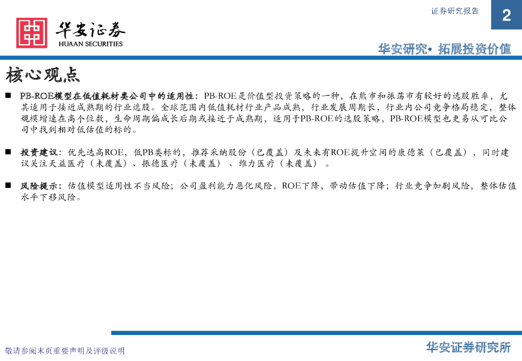 华安证券:医疗器械行业专题:PB-ROE模型在低值耗材中的应用.pdf