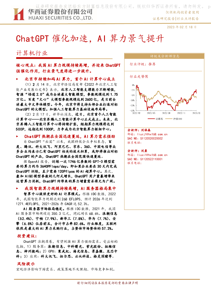 华西证券:计算机行业:ChatGPT催化加速,AI算力景气提升.pdf