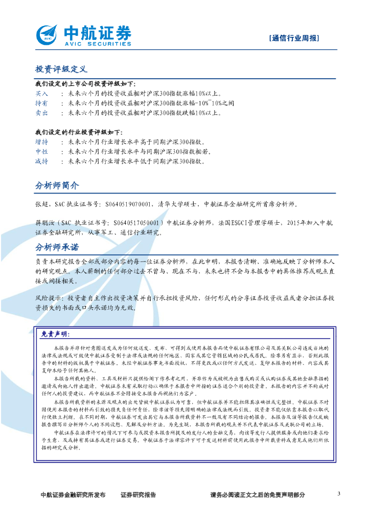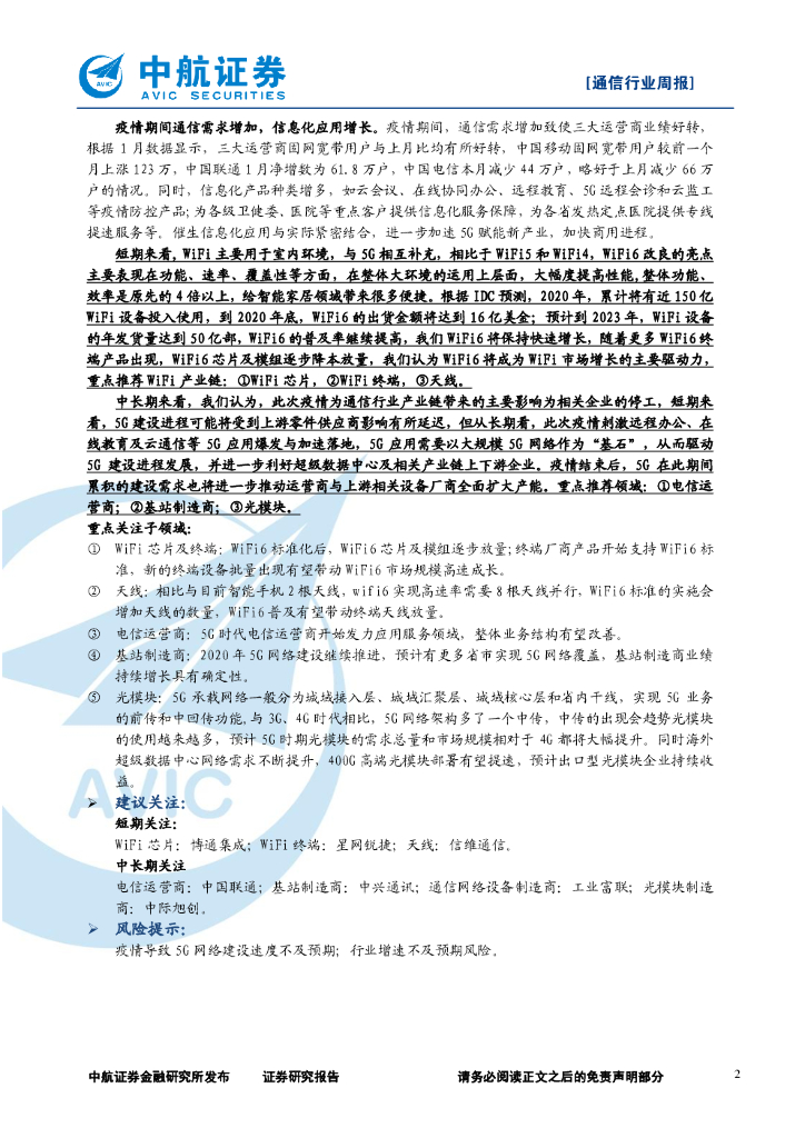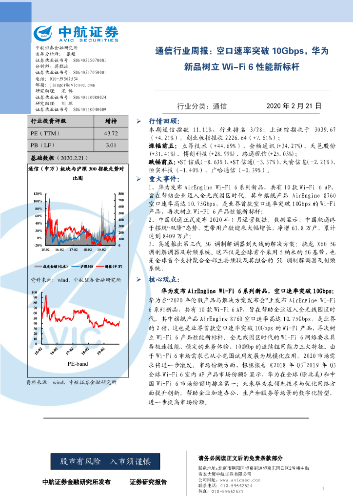 中航证券:通信行业周报:空口速率突破10Gbps,华为新品树立Wi-Fi6性能新标杆.pdf