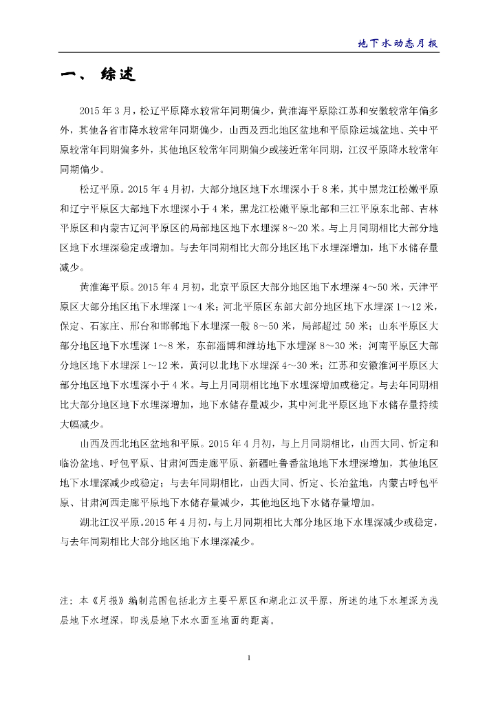 水利部:《地下水动态月报》2015年4月.pdf