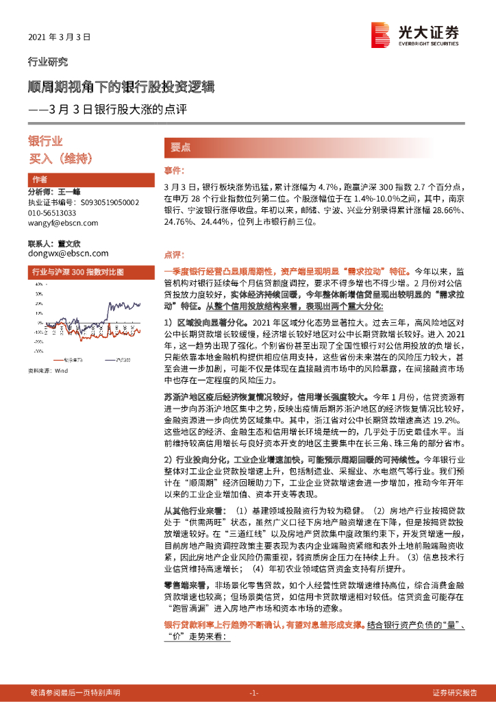 光大证券:银行业3月3日银行股大涨的点评:顺周期视角下的银行股投资逻辑.pdf