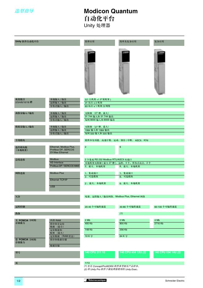 TELEMECANIQUE Modicon Quantum 自动化平台 和 Unity 软件 产品目录.pdf