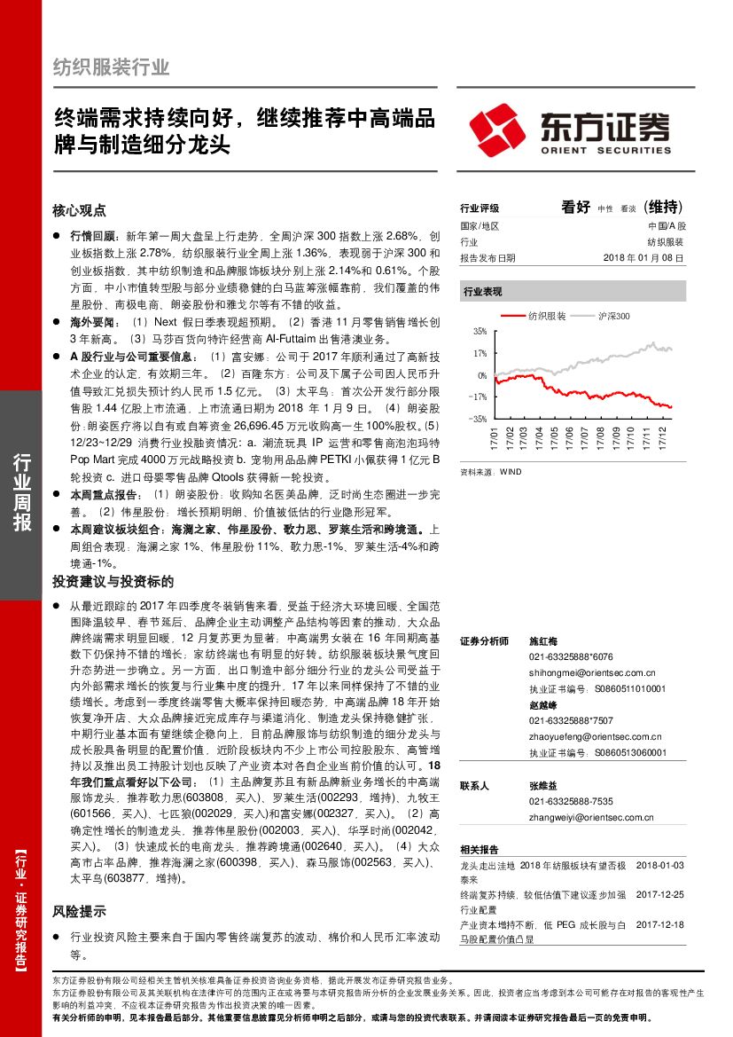 东方证券:纺织服装行业周报:终端需求持续向好,继续推荐中高端品牌与制造细分龙头.pdf