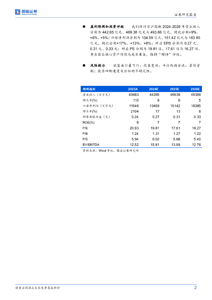国海证券:京沪高铁(601816)-2024年半年报点评:业绩稳健增长,京福安徽同环比亏损收窄.pdf