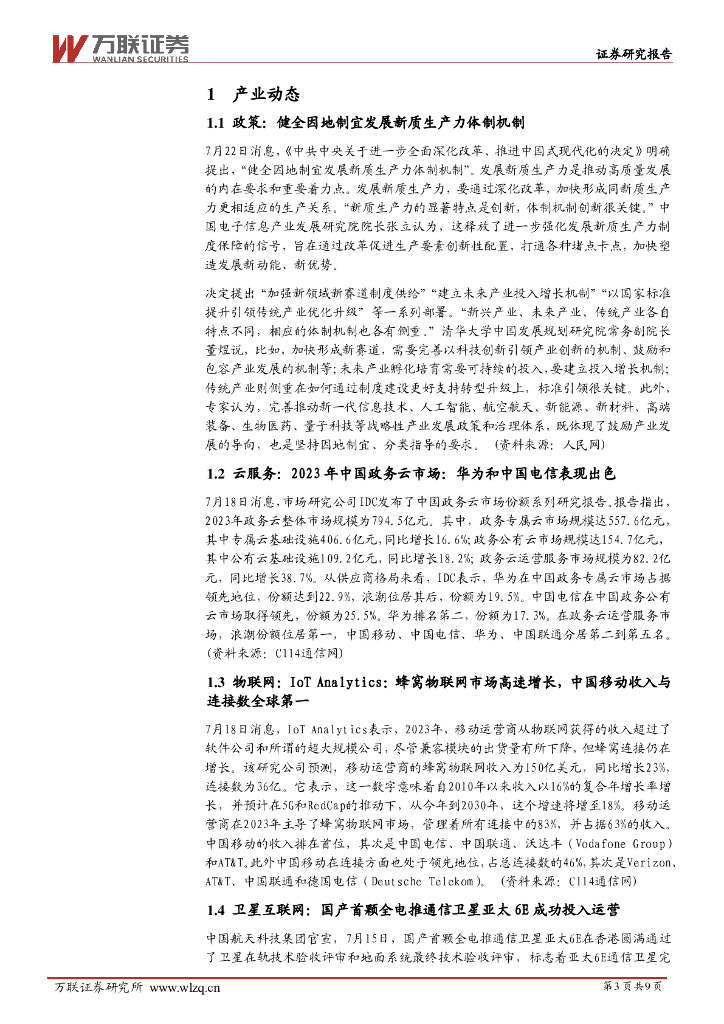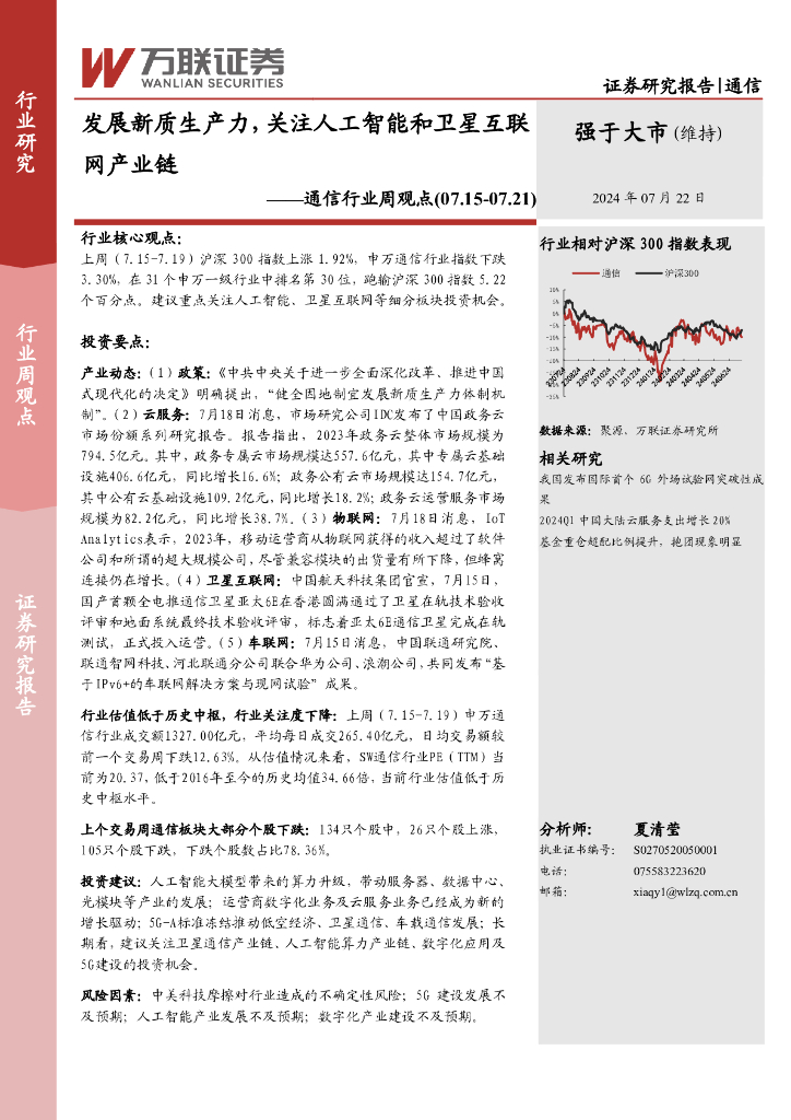 万联证券:通信行业周观点:发展新质生产力,关注人工智能和卫星互联网产业链.pdf