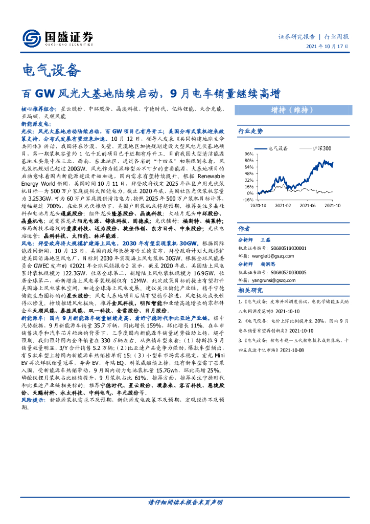 国盛证券:电气设备行业周报:百GW风光大基地陆续启动,9月电车销量继续高增.pdf