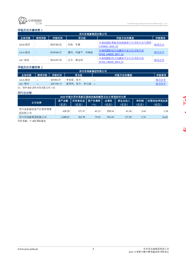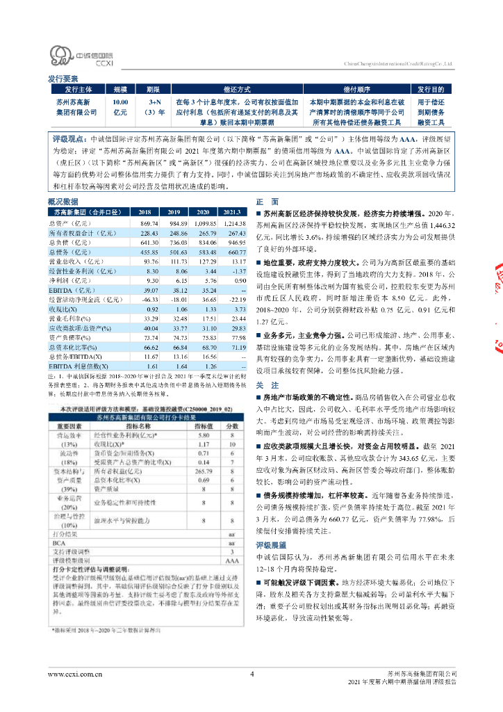 中诚信:苏州苏高新集团有限公司2021年度第六期中期票据信用评级报告.pdf