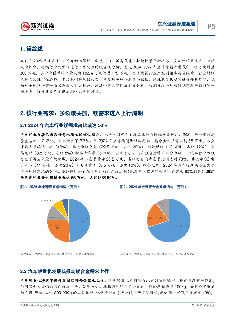 东兴证券:镁行业深度(Ⅱ):供需或进入持续性紧平衡状态--多领域共振推动镁需求增长.pdf
