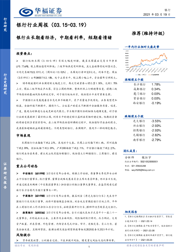华福证券:银行行业周报:银行业长期看经济,中期看利率,短期看情绪.pdf