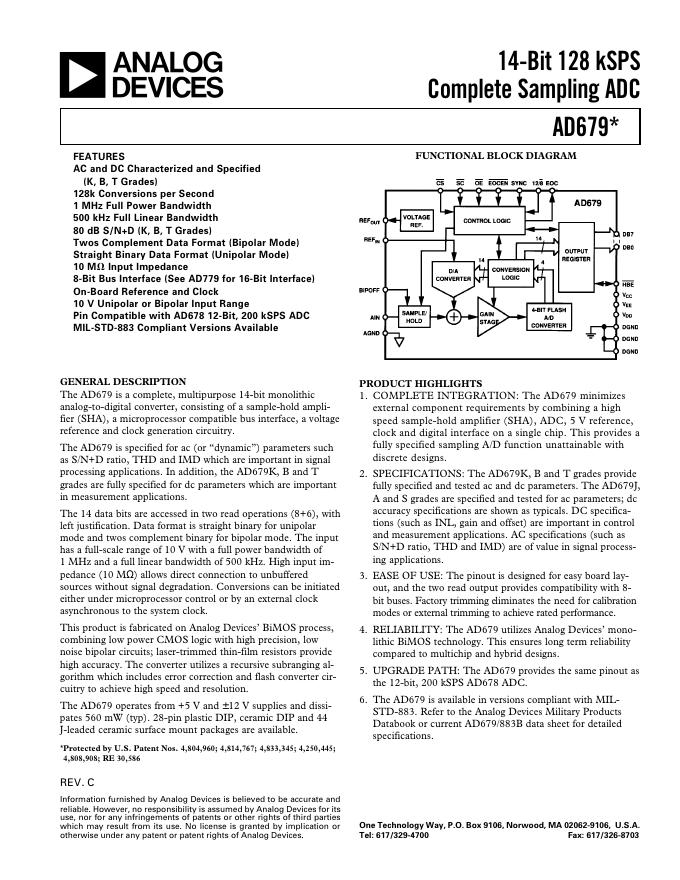 ANALOG DEVICES 14-Bit 128 kSPS Complete Sampling ADC AD679* 数据手册.pdf