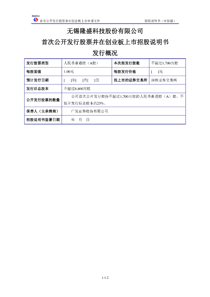 无锡隆盛科技股份有限公司深交所创业板IPO上市招股说明书.pdf