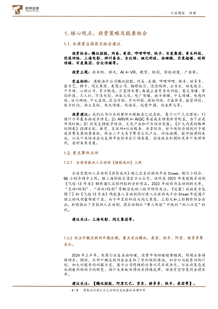 德邦证券:传媒互联网行业周报:全球首款双人互动剧《谍影成双》上线,关注中概互联网中期业绩.pdf